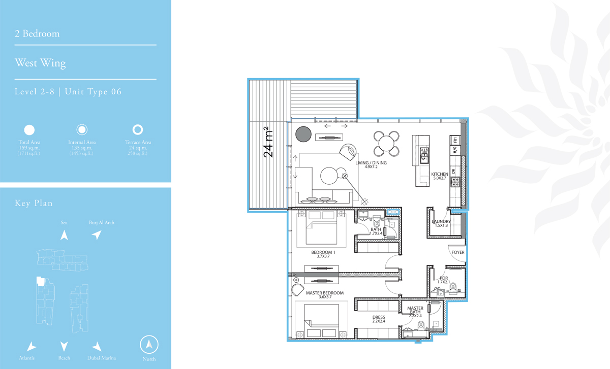 2 Bedrooms - West Wing 2 Bedroom L-2-8 T-6 1711.00 Sq Ft -
