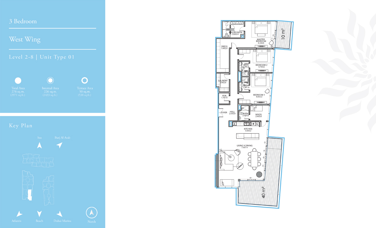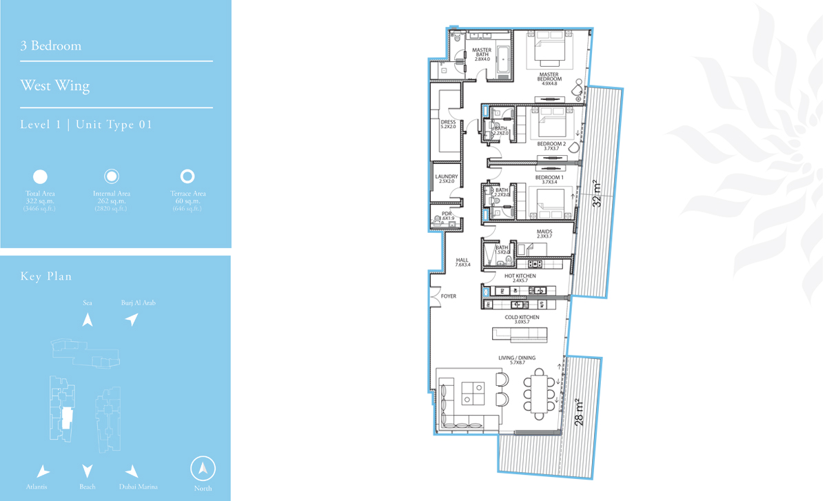 3 Bedrooms - West Wing 3 Bedroom L-1 T-1 3466.00 Sq Ft -