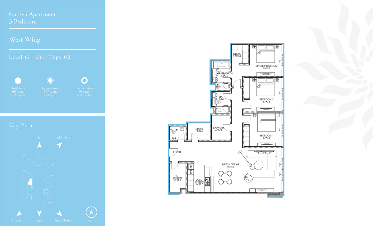 3 Bedrooms - West Wing 3 Bedroom L-G T-2 1798.00 Sq Ft -
