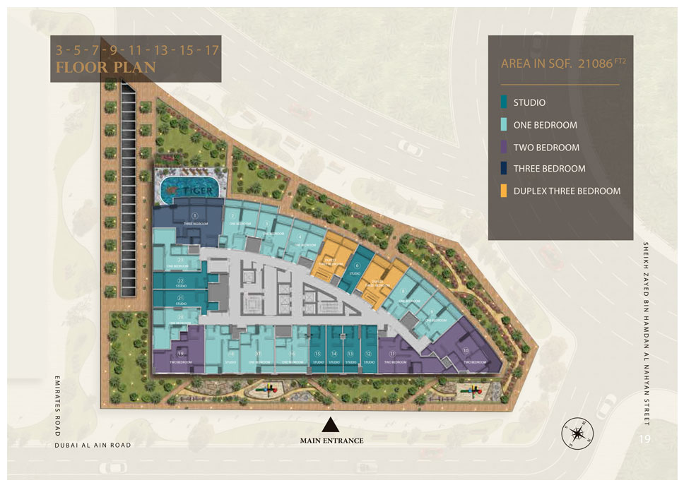 | Floor Plan | All | 3 - 5 - 7 - 9 - 11 - 13 - 15 - 17 - Floor - Size-21086-sq.ft | 21086.00 Sq Ft | All | |