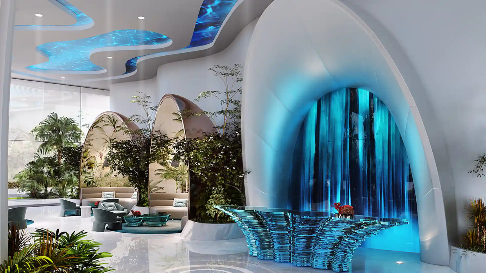 The exterior architecture is a masterpiece designed by de GRISOGONO, adding elegance and value to Dubai’s skyline. It is a symbol of fame and success in the already prestigious location. Its unique design allows residents to immerse themselves in the stunning surroundings, with every detail carefully considered to enhance the overall living experience.