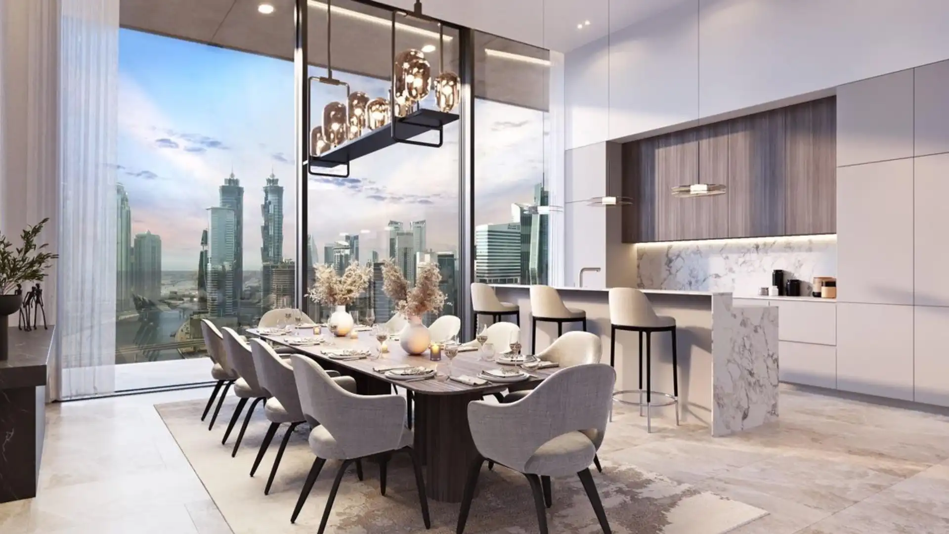This masterfully designed residential gem in Dubai offers an outstanding blend of modern luxury and urban sophistication. Its exterior architecture comprises two impressive 52-story towers and an exclusive collection of 16 premium waterfront duplex lofts. The towers have studio, one, two, three, and four-bedroom apartments. Each apartment is carefully designed to make the most of the space and create open, flowing living areas.