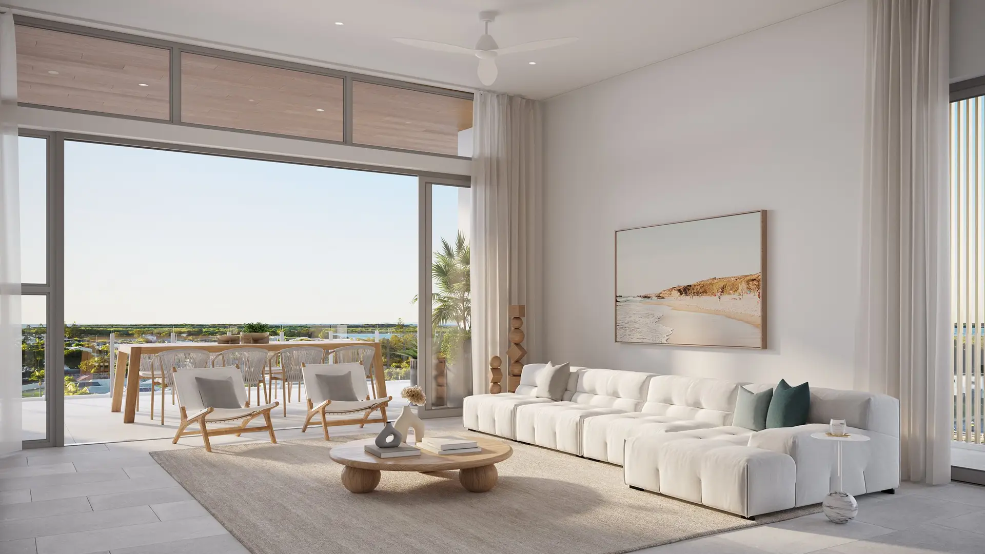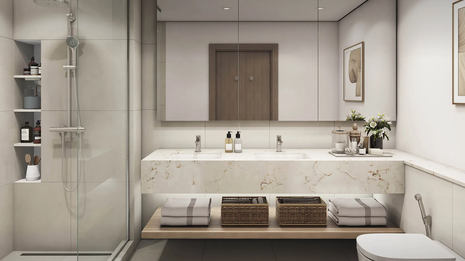 You’ll find high-specification one-, two-, and three-bedroom apartments inside the buildings, designed with a keen eye for elegance and comfort. The interiors have a tasteful mix of stone, marble, light timber veneers, and glass, creating a modern and sophisticated atmosphere. Each apartment features spacious terraces or balconies, ranging from 72 to 738 square feet.